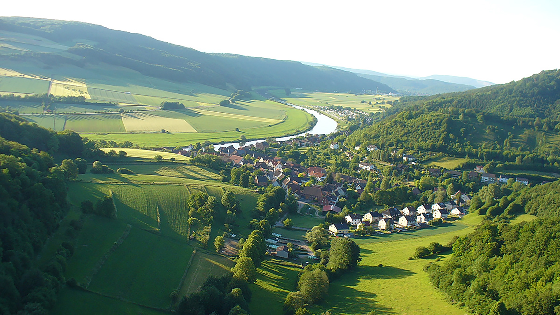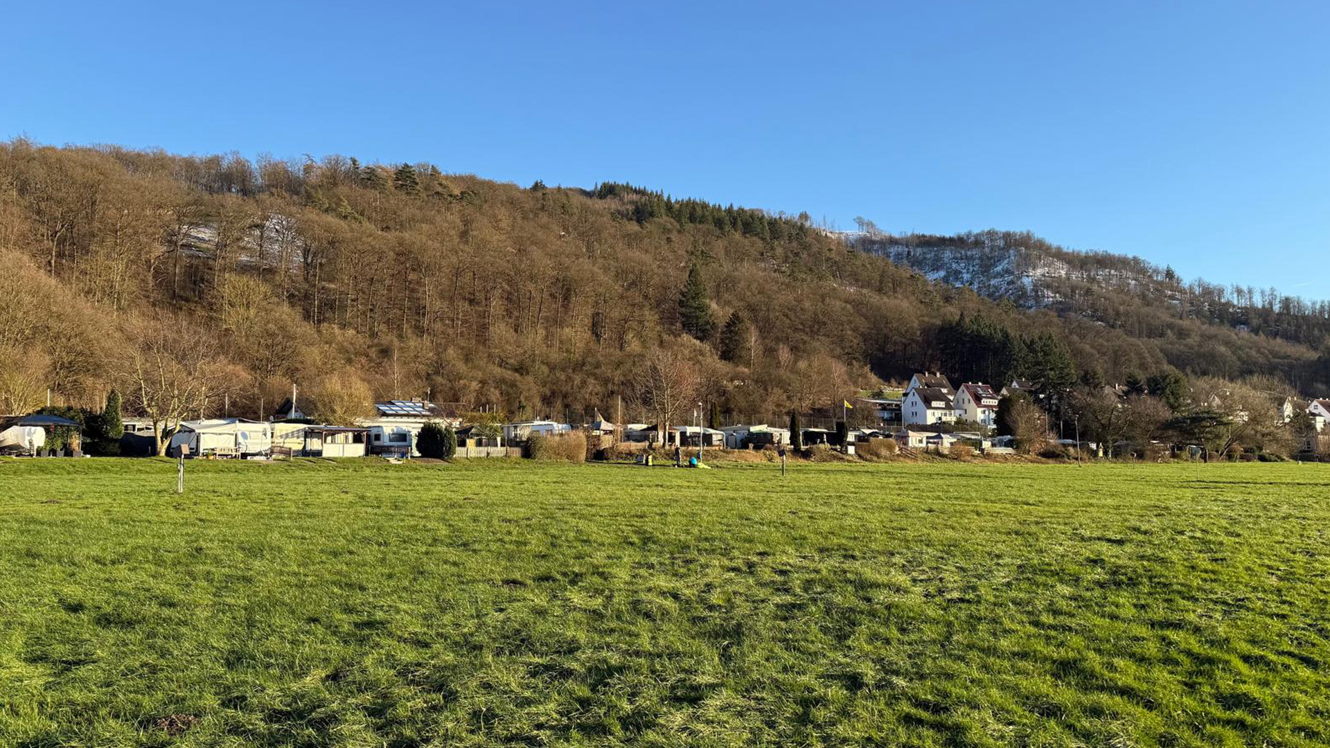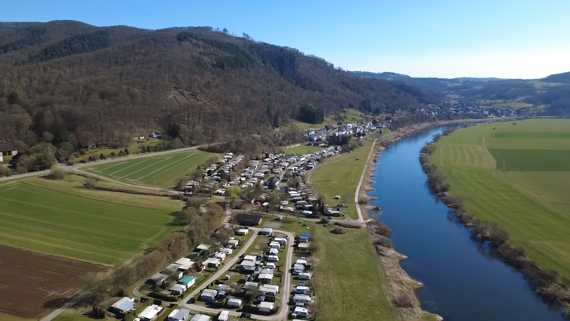 Here at the Rühler Schweiz campsite, located directly on the Weser, 3 km south of Bodenwerder, it is beautiful. It is no coincidence that the Weserbergland, and especially our Weserbogen, is one of the most beautiful spots in Lower Saxony. The Vogler Nature Park begins behind the campsite, inviting you to go on extended hiking, walking or mountain biking tours on quiet forest paths.